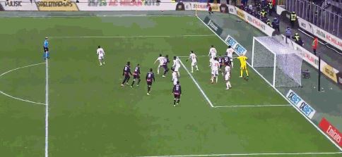 第90+5分钟,巴尔泰萨吉禁区内撞到埃勒特森,主裁判指向点球点,热那亚获得点球机会,斯坦丘主罚踢飞点球